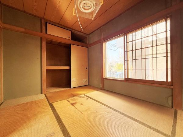 【和室】陽の光が差し込む大きな窓があり開放感を感じられます。押入れ付きで収納面にも配慮されています。