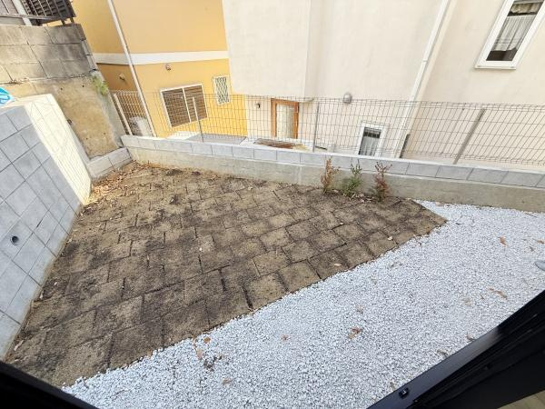 【庭】ゆとりある庭スペースが広がっています。手入れがしやすい砂利とコンクリートで仕上げられています。フェンスや塀が設置され安全性もしっかりしています。プライバシーも確保されているのが特徴です。