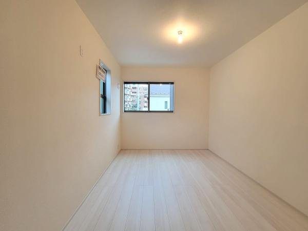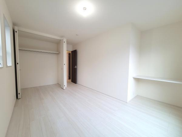 【洋室】明るいフローリングが特徴の洋室です。窓から自然光が入りやすく空間が広々と感じられます。収納スペースが備わっているため整理整頓がしやすいです。シンプルな内装で家具の配置がしやすい洋室となっています。