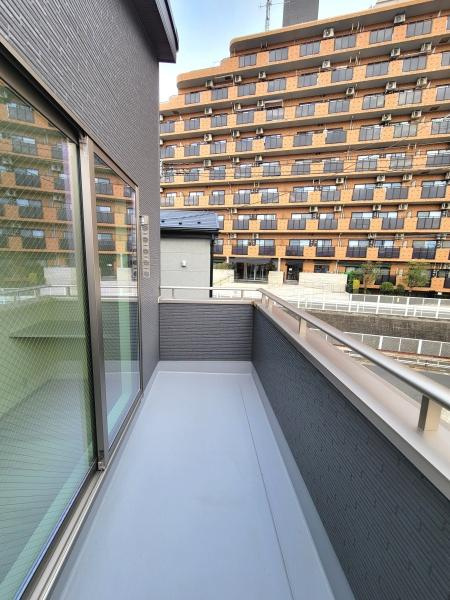 【バルコニー】ゆとりのあるバルコニーが特徴的です。落ち着いた外壁デザインが印象的で開放感を感じられます。窓からの採光も十分に確保されています。周囲の住宅との距離感も魅力のひとつです。
