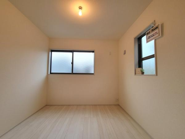 【洋室】洋室はシンプルな内装でどんな家具とも合わせやすい空間です。二つの窓から日差しが入り室内が明るく感じられます。床は淡い色調で落ち着いた雰囲気が広がります。壁や天井も清潔感のある色合いです。